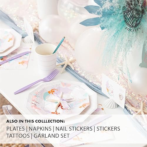 Daydream Society Under the Sea - Temporary Tattoos - Mermaid Design - Kids Tattoos in Pastel Colors and Holographic Foil Pattern - Pack of 2 Temporary Tattoos - For Birthdays, Mermaid Parties and more