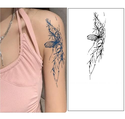 Dead Tree Growth Butterfly Parasitic Herb Temporary Tattoo Sticker, Semi-permanent Waterproof, Lasting 2 Weeks, Fake Tattoos(2pcs)(2pcs)