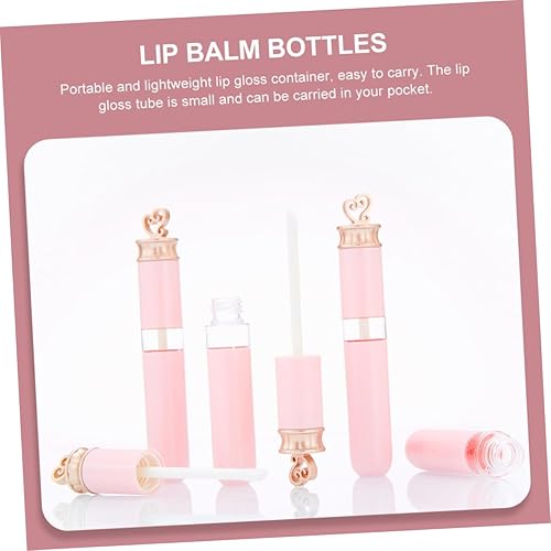 DECHOUS 6Pcs Pink Heart Lip Gloss Tubes DIY Refillable Lip Balm Containers for Women Portable for Cosmetics Gift