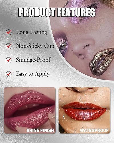Long-Lasting Full Coverage Lip Color - Impart a full coverage color to your lips that dries to a long-lasting, metallic finish with this wonderful lipstick. Glitter lip gloss silky soft creamy texture, matte glitter finish, goes on smoothly without feeling bulky or harsh. You can also add a hydrating lip glaze to your liking for a popping, hydrating sparkling lip. Metallic Matte Lipstick is non-sticky cup, long-lasting and waterproof lasts all day without fading.