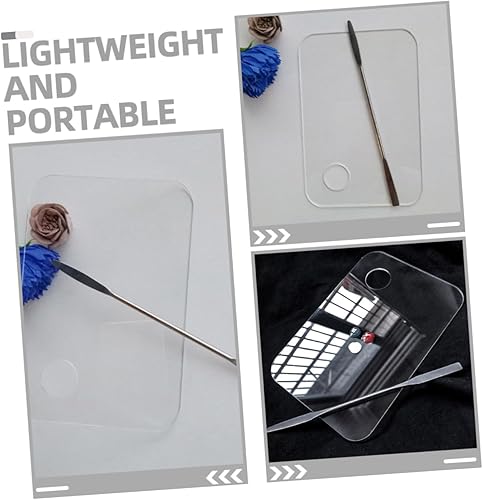 Makeup mixing palette with spatula: the transparent acrylic material used in this ensures clear visibility, allowing users to easily see the colors and textures of the materials they are working with,foundation plate