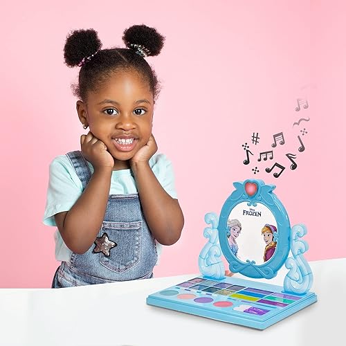 KIT INCLUDES : Light-up Cosmetic Vanity Set Includes 6 Lip Gloss In Dark Purple Glitter, Pink Glitter, Blue Glitter, Teal Glitter, Yellow Glitter, Rose Glitter With Cotton Candy Flavor. 8 Eye Shimmers In 2 Pink Glitters, Rose Glitter, Blue Glitter, Silver Glitter, Gold Glitter, Purple Glitter, Teal Glitter. 4 Cheek Shimmer in Turquoise Shimmer, Light Pink Shimmer, Lavender Shimmer, Pink Shimmer. 1 Compact W/ Mirror and Plays Music. 6 Brushes for Lip, Eye, And Cheek.