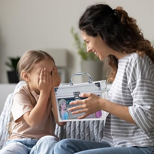 Disney Princess Train Case Beauty Set, Kids Makeup Kit for Girls, Real Washable Makeup Set, Play Makeup, Party Favor, Birthday, Ages 3 4 5 6 7 8 9 10 11 12 by Townley Girl(Frozen)