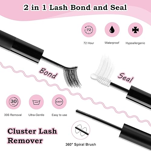 [3 Steps for Applying Lashes] Even beginners can achieve salon-quality results right at home. Simply apply lash bond to the lash clusters and wait for about 15S. Next, place the clusters under your natural lashes. Gently apply a thin layer of lash seal for reinforcement. And voila! You're all glammed up!