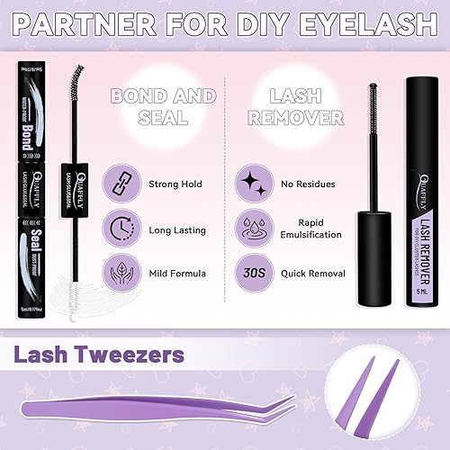 All in one set, save your money: 4 trays of lashes + bond&seal+ remover + tweezers, from makeup to makeup remover in one stop. No need to purchase additional tools, cost-effective, a must-have for beauty lovers.