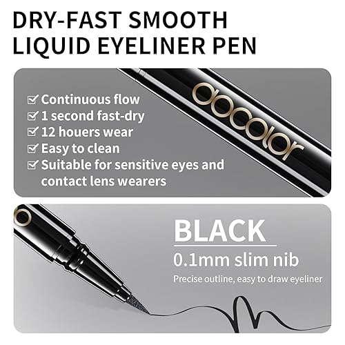Docolor Waterproof Eyeliner Pen: Precise, sharp lines. Intense color. No smudge and Quick dry. Up to 12hr wear, An eyeliner pen that has a continuous flow, providing smooth even lines, Get the perfect long-lasting cat-eye look with professional Unique makeup Ink eyeliner.