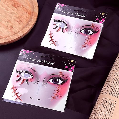 Doneace Halloween Face Jewels Costume Accessories Black Red Demon Spider Face Gems Jewels Festival Vampire Rhinestone Stickers All In One Halloween Stick On Sticker 2PCS (Style 2)(03.Scar wound,One size fits all)