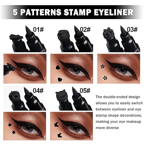DOUBLE-HEADED DESIGN: Eyeliner stamp adopts double-headed design, one side is a delicate eyeliner, the other side is a creative stamp, which can easily draw precise and smooth eyeliner, helping you create different styles of eye makeup