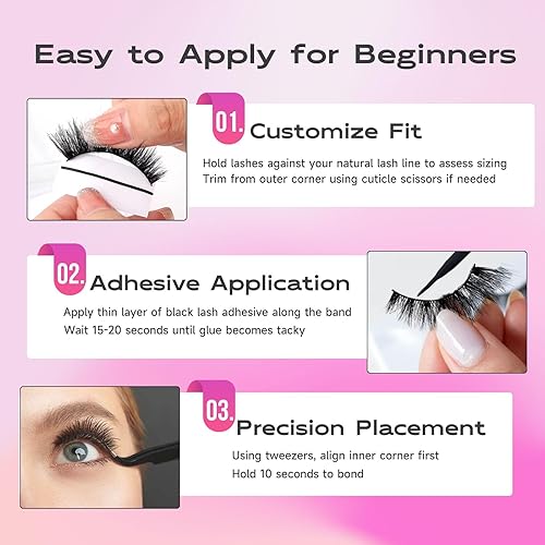 Effortless Application & Custom Fit: Perfect for lash lovers of all levels, including beginners! These easy to apply false eyelashes are designed with a flexible 36 mm Full-Strip band that is simple to handle, bends perfectly to match your eye's curve, and can be trimmed for a seamless, customized fit. Whether you’re using lash glue for traditional glue on lashes or your favorite adhesive, they’re quick and convenient. Ideal for various eye shapes like almond, round, hooded, and monolid eyes