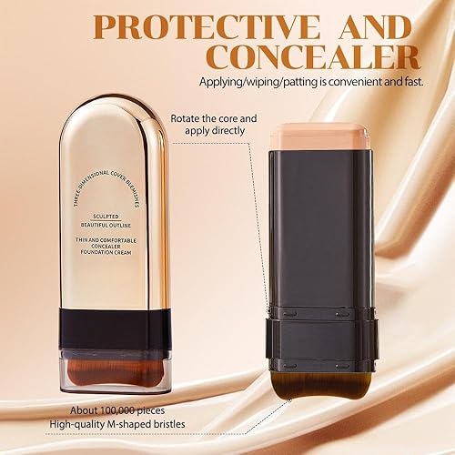 INNOVATIVE DESIGN: Dual-ended foundation stick with rotating brush head for easy application and precise coverage, measuring 4.8 inches in length