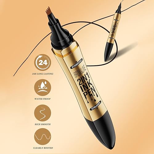 2-IN-1 EYEBROW PENCIL: The eyebrow pencil has a precise four-ended micro-forked brush head that depicts lifelike eyebrows, and an eye liner on the other end for full eye makeup application.