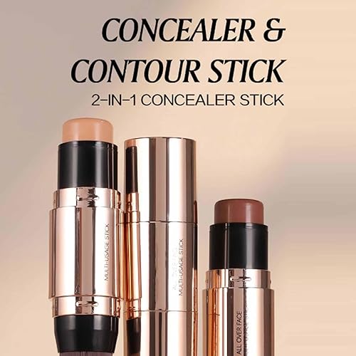 【Easy to Use】Facial Contouring Stick Set, emphasizing facial features, the bronze stick outlines facial contours, effortlessly creating a sculpted makeup look.