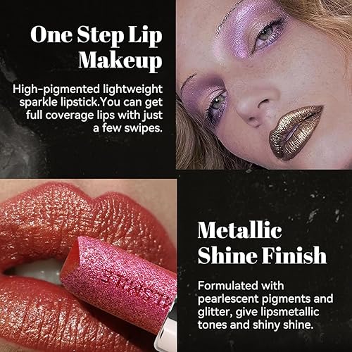 【Shimmer Metallic Lipstick】Shimmer lipstick creates a diamond shiny shimmery finish on your lips, glides on smoothly to minimize line and provides radiant colors, making your lips fuller