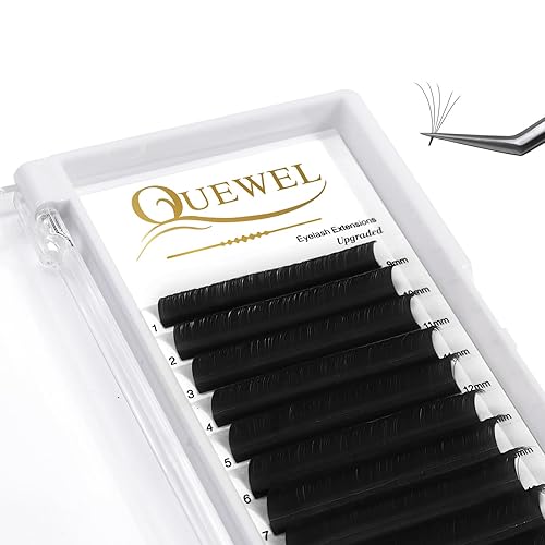 COLOR LASHES-EASY FAN VOLUME LASHES : QUEWEL black mega volume lash extensions,0.07 D Curl,mixed 9-16mm,12 rows per eyelash tray,including 9mm*1/10mm*1/11mm*2/12mm*2/13mm*2/14mm*2/15mm*1/16mm*1.