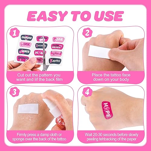 Wide application:Breast cancer awareness stickers are suitable for most parts of the body, such as the face, hands, and ankles. They can be used for fundraising events, pink ribbon awareness campaigns, and other charitable causes to spread awareness and demonstrate your attitude, encouragement, care, and love. Each tattoo is a powerful statement against this disease.