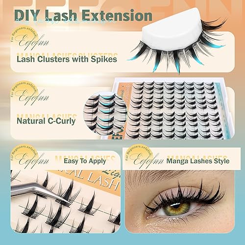 Fairy Eyelash Clusters Kit: Wispy anime lash extension kit includes spikes lash clusters natural look, lash bond and seal and tweezers. Manga cluster eyelash extension kit provides a soft glam or daily natural looking lash extensions effect