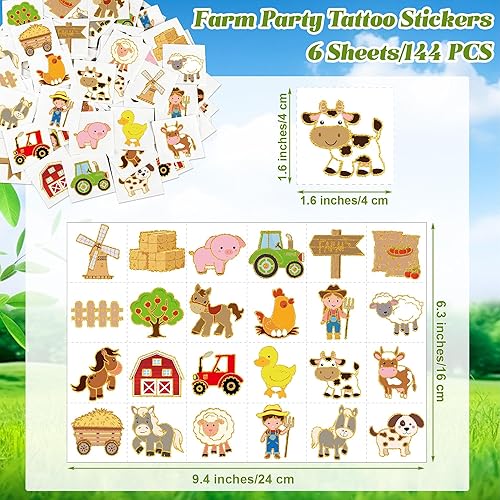 Package Includes: the package includes 6 sheets, with each sheet containing 24 distinct farm patterns, totaling 144 individual temporary tattoos, ideal for farm themed party favors, classrooms, birthday celebrations, family gatherings, or sharing with friends and loved ones