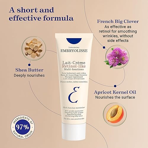 Embryolisse Lait-Crème Retinol Alternative Anti-Aging Face Moisturizer & Makeup Primer for Normal to Sensitive Skin. Reduces Fine Lines, Wrinkles & Puffiness, 2.54 Fl Oz