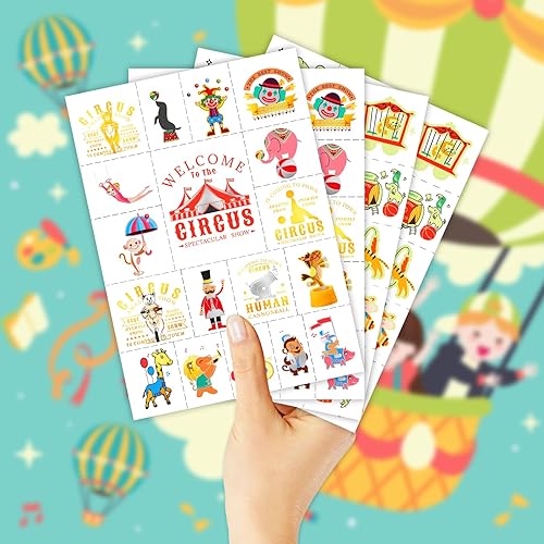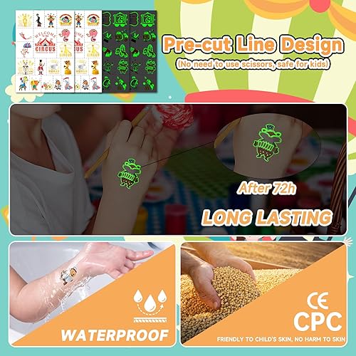 EMOEM Metallic + Glow Kids Tattoos Temporary, Waterproof Tattoo Stickers for Boys and Girls, Metallic Glitter Glow Party Favors Goodie Bag Stuffers (Butterfly)(Circus)