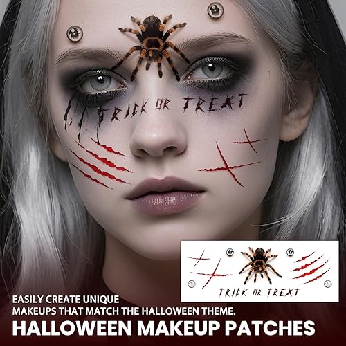 【Wide Application】Halloween face tattoo truly offer a broad application, making them the ideal accessory for a variety of events. They're perfect for Halloween party decorations, Trick or Treat, Halloween costume parties, haunted houses, parades, pumpkin carving and themed gatherings. No matter if you're dressing up for a festive party, participating in a parade, or simply enjoying a family gathering, these stickers can help everyone embrace the Halloween activities.