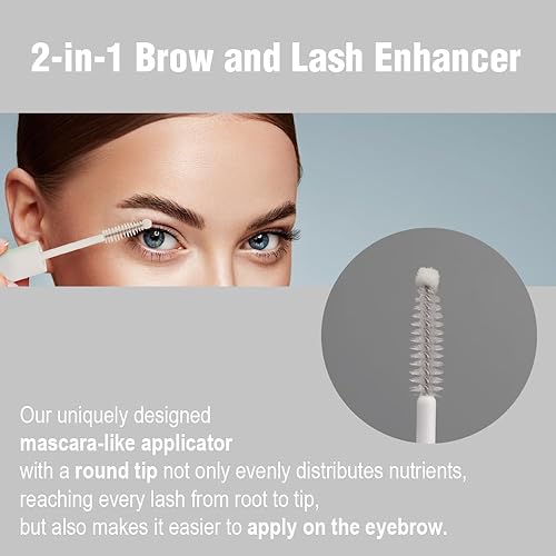 2-in-1 Brow and Lash Enhancer: Our uniquely designed mascara-like applicator with a round tip not only evenly distributes nutrients, reaching every lash from root to tip, but also makes it easier to apply on the eyebrow.