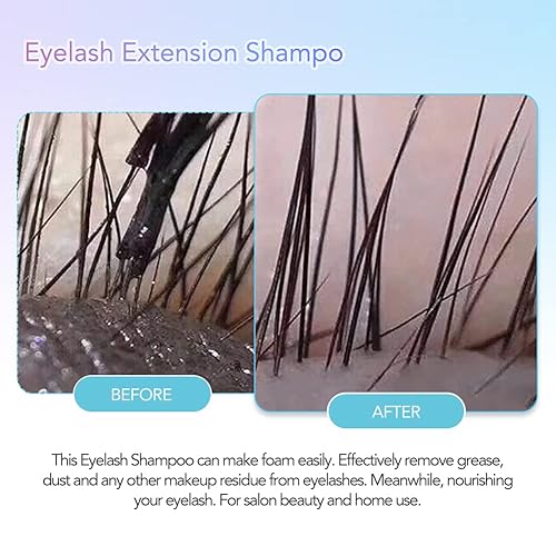 Eyelash Shampoo for Lash Extensions: Eyelash extension cleanser is non-irritating and gentle enough to use on sensitive skin as well. Safe formula without harsh chemicals.