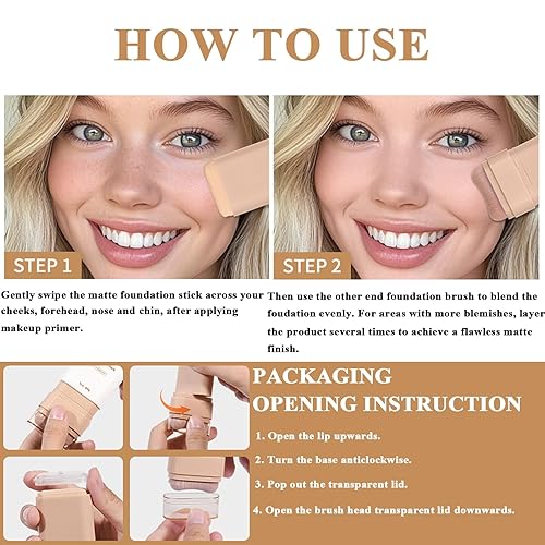 Comment on "Face Foundation Stick, Flawless Eraser Foundation Stick with Brush, Lightweight Long Lasting Full Coverage Concealer and Contour Sticks, Matte Finish (#3 WARM BEIGE)(#2 NATURE)"