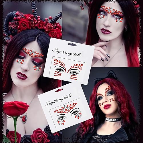 Package Includes: Includes 4 sets of red face diamond stickers, 4 different styles to match match your party or cosplay outfit and enhance the overall look