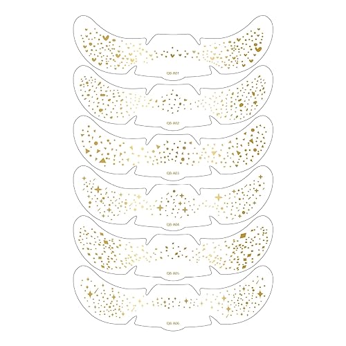 PACKAGE INCLUDES: Set of 6 gold mixed shapes glitter freckle tattoos, perfect for creating a dazzling facial embellishment look