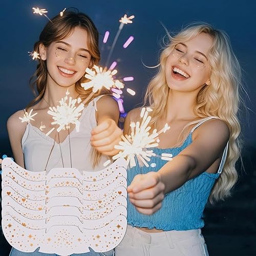 Easy to Apply and Remove: The glitter temporary tattoos are easy to use. Simply peel off the backing of gold tattoos temporary, peel and stick the face tattoos for kids onto your skin. Use a damp tissue to gently press for 10 seconds, then peel off the gold face gems to reveal beautiful, natural-looking freckles.Just 2 minutes to create a flawless look. The gold temporary tattoos can be easily removed with makeup remover. And the freckle tattoo won't leave any residue