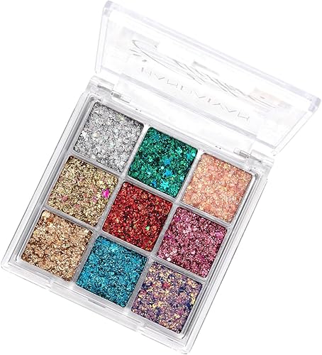 Comment on "Face Glitter Palette, 9 Color Shimmer Eyeshadow Palette Body Glitter, Glitter Makeup for Body,Face Eyeshadow,Nails and Hair (9 Color A)(8 Color)"