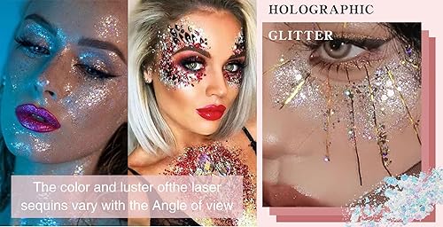 EASY TO CLEAN, The body glitter sequins do not require any additional adhesive, just apply directly to the desired area and spread evenly with your fingertips. When it needs to be cleaned, it can be washed off thoroughly with regular body wash. You can use it to enjoy the fun brought by the rave without worrying about cleaning.