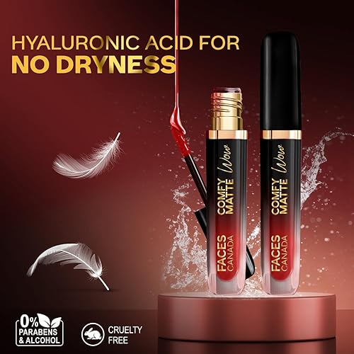 Comment on "FACES CANADA Comfy Matte Wow Liquid Lipstick Ruby Rouge 03 3.8ml | One Swipe Application | Highly Pigmented | Comfortable Wear | Glides Smoothly | Long Lasting | Transferproof"