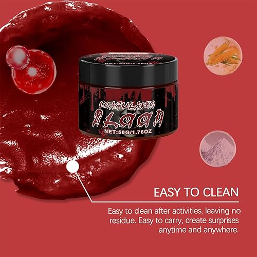and Safe Material: Safe and harmless with food-grade materials, our fake blood is perfect for all ages. Enjoy a versatile and authentic addition to any theatrical or Halloween look.