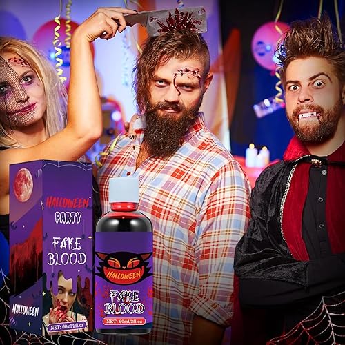 Realistic Appearance: This 60ml fake blood makeup is designed to mimic the look of real blood, making it perfect for creating spooky and dramatic effects for Halloween parades, costume parties, and theatrical performances