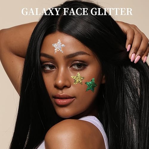 Multi-Purpose for Face, Body & Hair: FANDAMEI versatile glitter for face, hair and body can be used anywhere you want to sparkle, nice face glitter for kids and women! Highlight cheekbones with iridescent stars, adorn collarbones with sparkling moons, or add galaxy glam to your hair glitter styles. Simply apply it on hair, on body like arms and shoulders, on face like eyelid and lip, You will get any fancy effect you want. Ideal for kids glitter makeup and bold enough for adult glam.