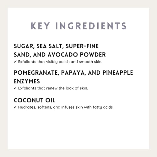 GENTLE AND EFFECTIVE: It has Caribbean-inspired ingredients which are an ideal balance between gentle and effective and its decadent formula performs a double duty to both polish and soften the skin.
