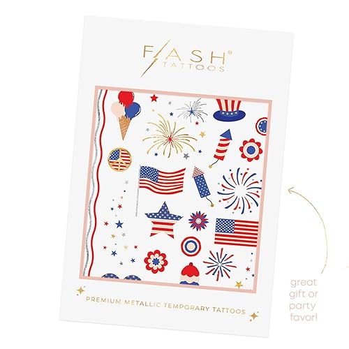 Flash Tattoos USA metallic Temporary Tattoos | 2 sheets, 52 tattoos | Fourth of July tattoos, USA stickers | Red White and Blue party supplies | USA flag, Olympics, Memorial Day