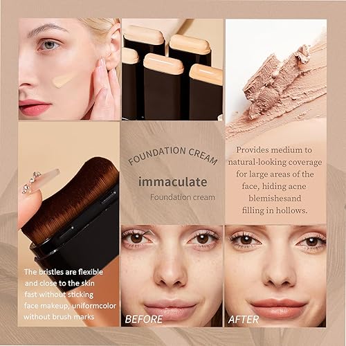 Unique design - One end serves as a brightening beauty stick foundation, while the other end features a built-in brush, ensuring an even complexion after application.