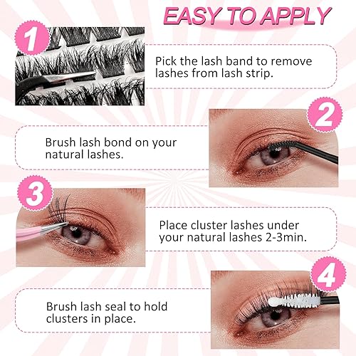 Easy To Use and Perfect Long Lasting: The eyelash adhesive in the kit is designed as a 2 in 1 eyelash adhesive and eyelash sealant.One side is an eyelash adhesive and the other side is an eyelash sealer. Making these clusters lashes easier to use and providing a longer-lasting hold.