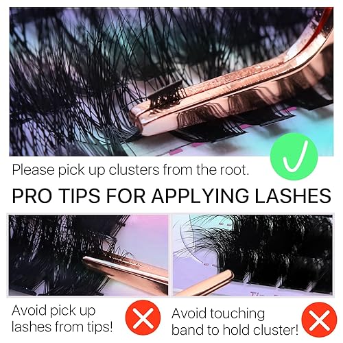 Apply Lashes in 5 Minutes: Gently brush your natural lashes with lash bond. Then, attach the cluster to your natural lashes for a comfortable and natural look. Squeeze the clusters against your lashes, wait for 15 seconds, and apply lash seal to lock in the bond. In just 5 minutes, even beginners can have stunning lashes