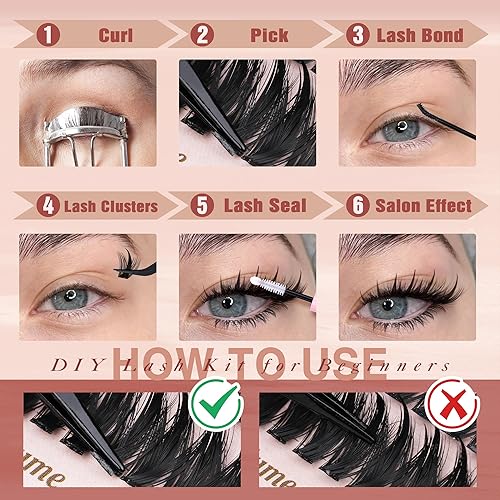【Beginner-Proof Pro Results at Home】:Skip the salon—these thick dramatic lash clusters make it easy to create professional-grade individual eyelash extensions in minutes. The set includes 200pcs clusters lashes in varying lengths (12mm–18mm), perfect for crafting customized, high-impact looks with a touch of adhesive