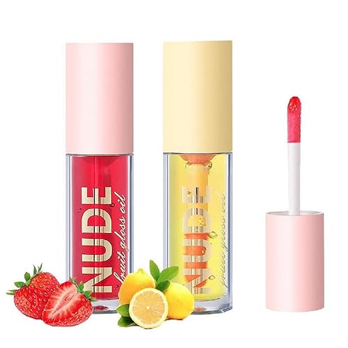 Fruit Flavoured Lip Oil,Lip Oil,Fruit Color Changing Lip Gloss lipstick, Long Lasting Moisturizing Lip Tint (Coconut+Lemon, 2pcs)(Strawberry+Apple,0.04 Fl Oz (Pack of 2))