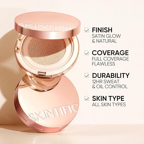 [FULL COVERAGE WITH GLASS SKIN GLOW] – Achieve flawless skin in one tap. This cushion uses Nano Silicone Crosspolymer (0.25 micron) to deliver true full coverage, perfectly concealing blemishes, dark spots, and uneven tone. The result is a smooth, radiant glass-skin glow that looks naturally luminous without heaviness.