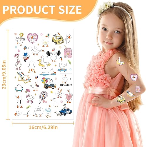 Funny Ducky Temporary Tattoos - 200+ Ducky Theme Birthday Party Decorations Supplies, Fun Animal Party Favors Fake Tattoo for Kids Boys Girls, School Prize (8 sheets)(Geese565)