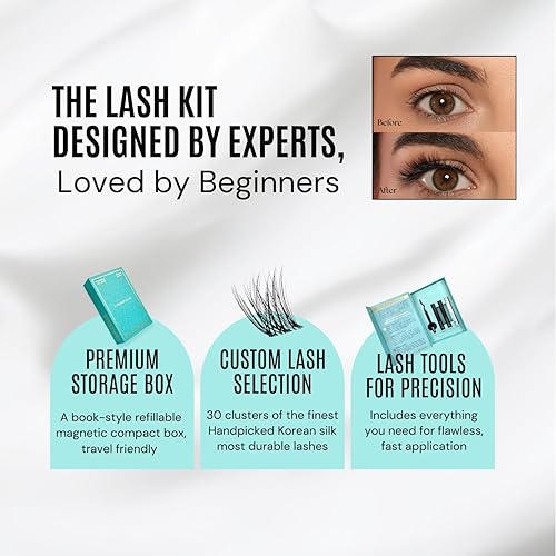 PREMIUM KOREAN SILK FOR UNMATCHED COMFORT: The wispy lash clusters are made from high-quality Korean Silk PBT fibers, these cluster lashes are incredibly soft, lightweight, and flexible. The thin, comfortable band ensures irritation-free wear, lasting 5 to 10 days without discomfort.