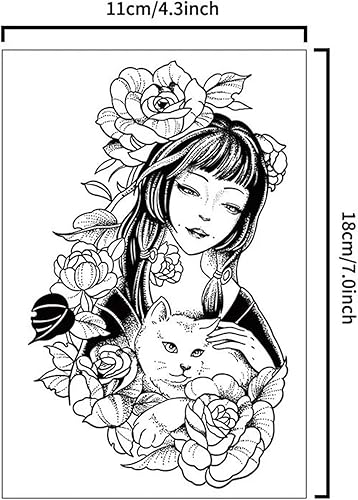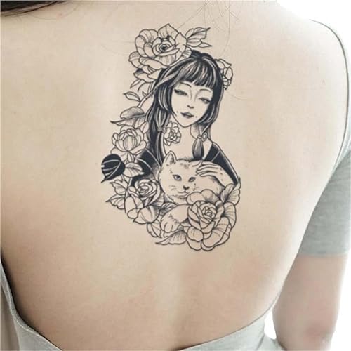 Geisha And Kitten, Tattoo Stickers, Realistic Fake Tattoos For The Back(2pcs)