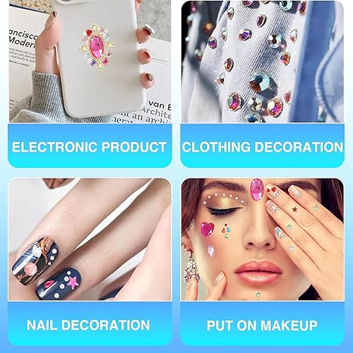 Self Adhesive Rhinestones: Our stick on gems are designed for hassle free application no glue needed! The strong adhesive ensures they stay in place on smooth surfaces like glass, plastic, and paper. Ideal for blinging out accessories, nails, or party decorations. A must have for craft lovers