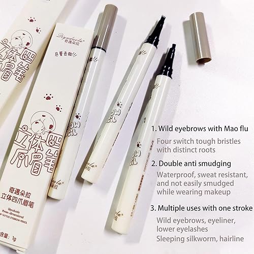 Waterproof and long-lasting - The liquid of the eyebrow pencil is waterproof and easy to wipe off. Do not rub your eyebrows hard.