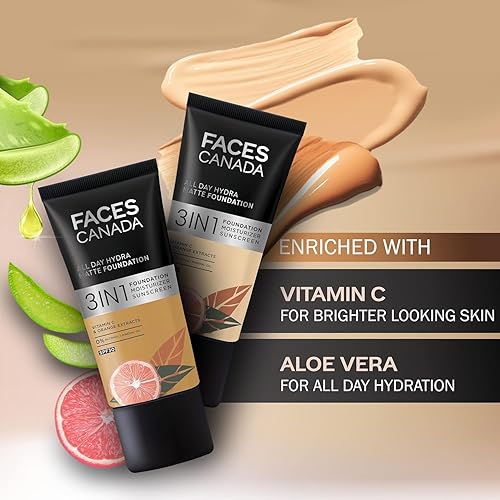 3 in 1: FAC.ES-CANA.DA All Day Hydra Matte Foundation is a multi-benefit foundation + moisturizer + sunscreen. The benefits of a high-coverage foundation, a broad UV spectrum of SPF 30, and the goodness of a moisturizer are all packed in one product.